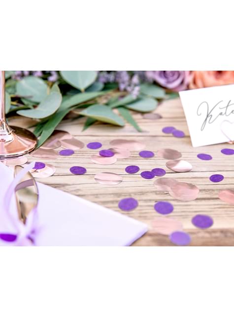 Confeti redondo morado de papel para mesa